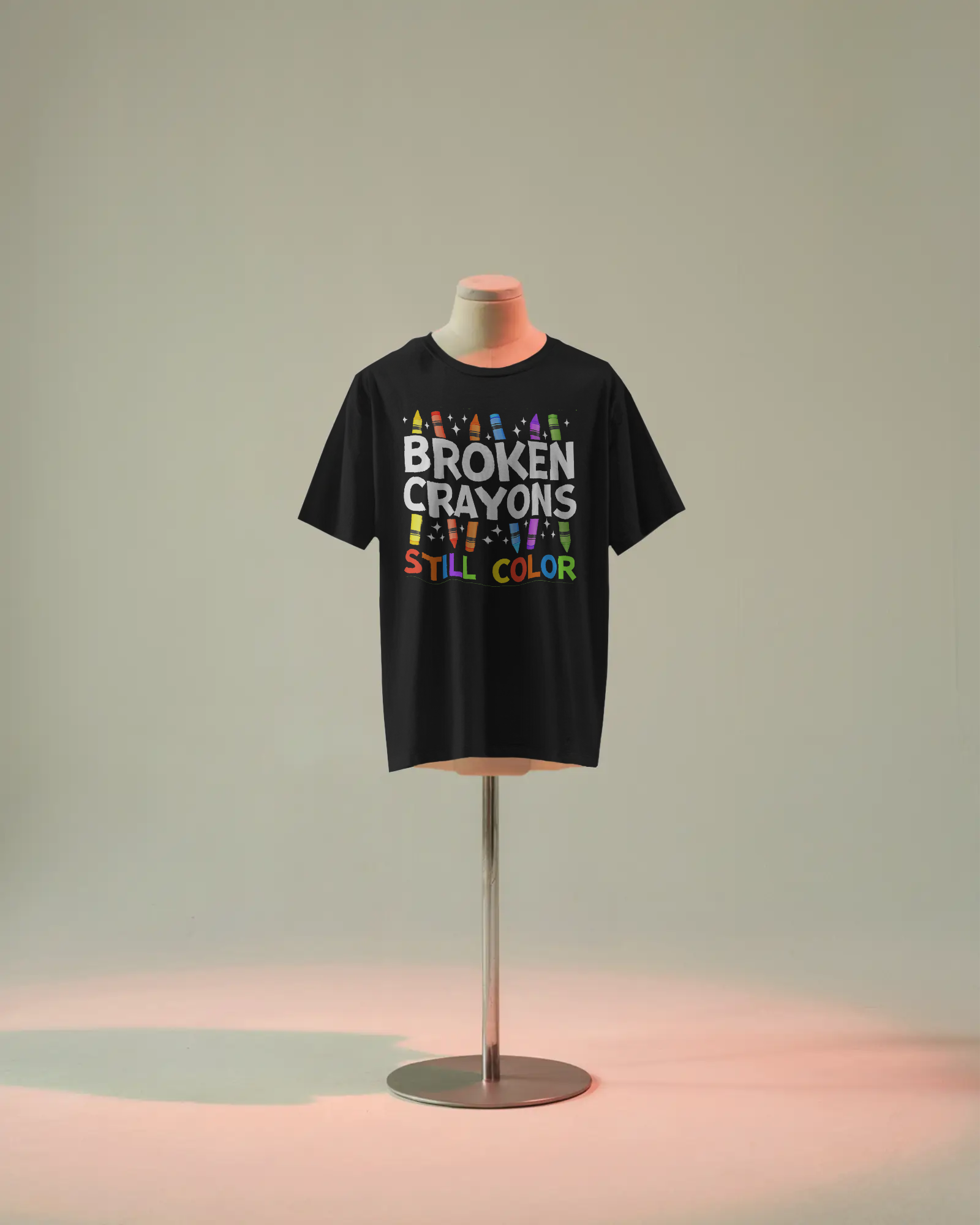 This unisex t-shirt features the inspiring message "Broken Crayons Still Color," symbolizing resilience and hope in mental health. Crafted for comfort and durability, it serves as a meaningful reminder that imperfections do not diminish value or potential. Ideal for raising awareness or personal motivation, this shirt combines thoughtful design with everyday wearability.