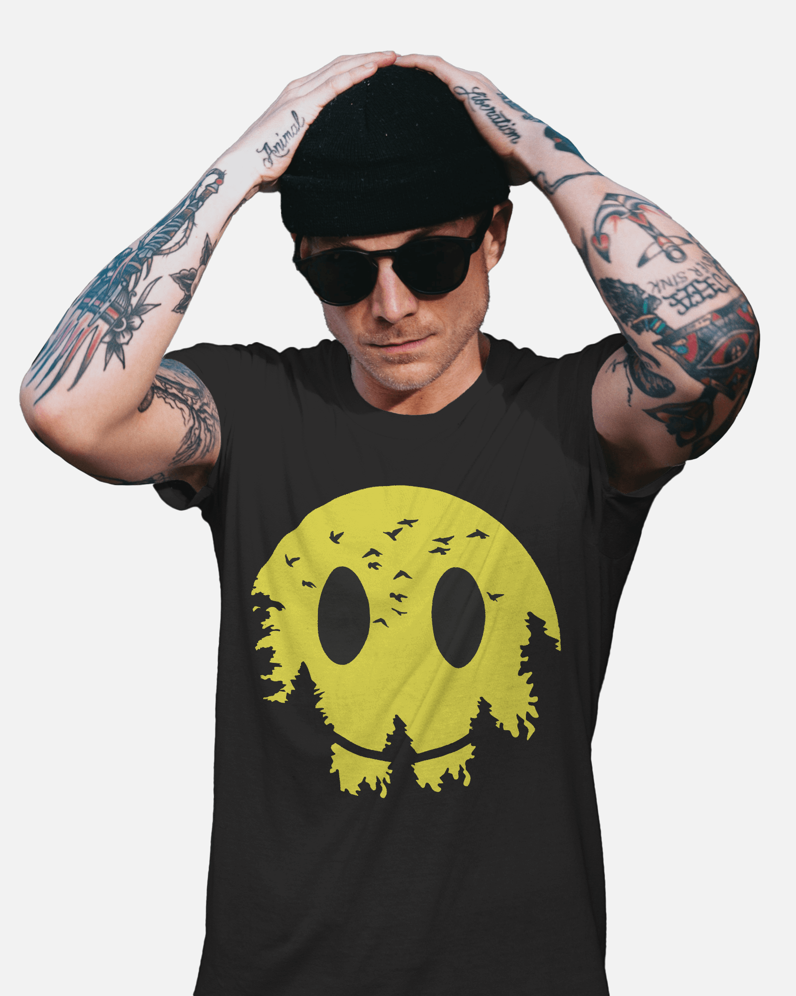 This casual unisex t-shirt features a cheerful smiley face design set against a serene forest backdrop, blending comfort with a touch of nature-inspired style. Crafted for everyday wear, it offers a relaxed fit suitable for all genders, making it a versatile addition to your wardrobe. Ideal for those who appreciate subtle, uplifting graphics paired with soft, breathable fabric.
