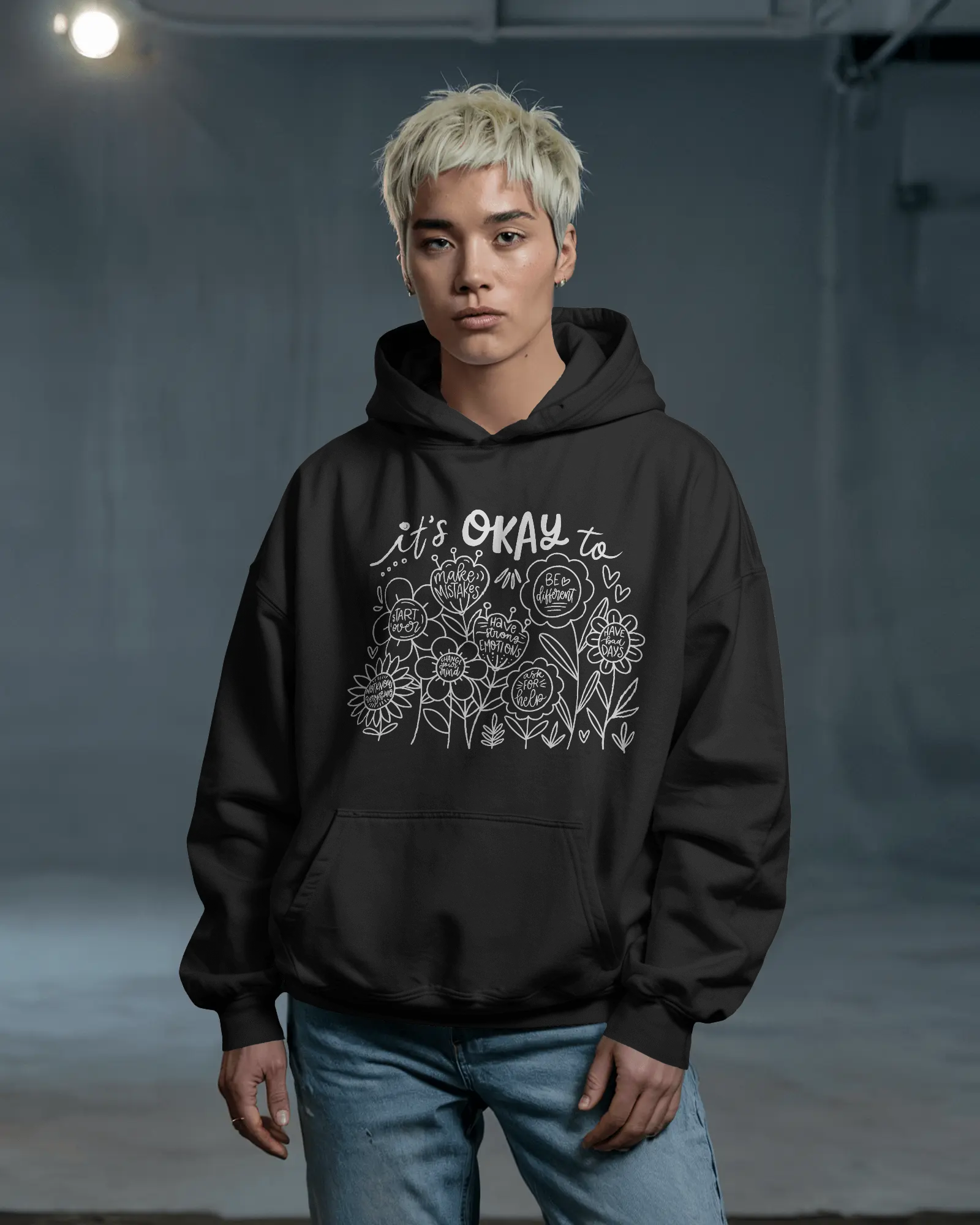 Stay cozy and spread mental health awareness with the printed "It's Okay to" Comfy unisex Hoodie. Made with soft and comfortable material, this hoodie reminds us to embrace all emotions.